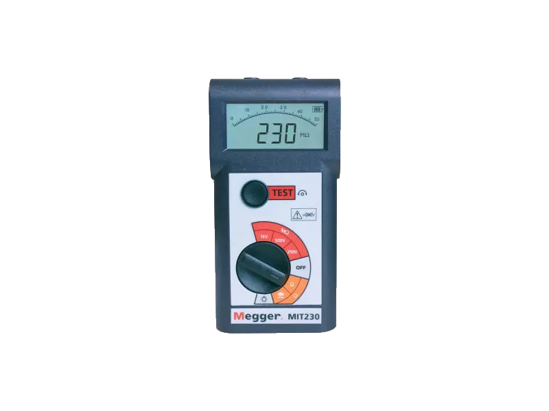 De Megger MIT230 is een veelzijdige, betrouwbare en gemakkelijk te gebruiken isolatieweerstandtester met testspanningen van 250, 500 en 1.000 V.