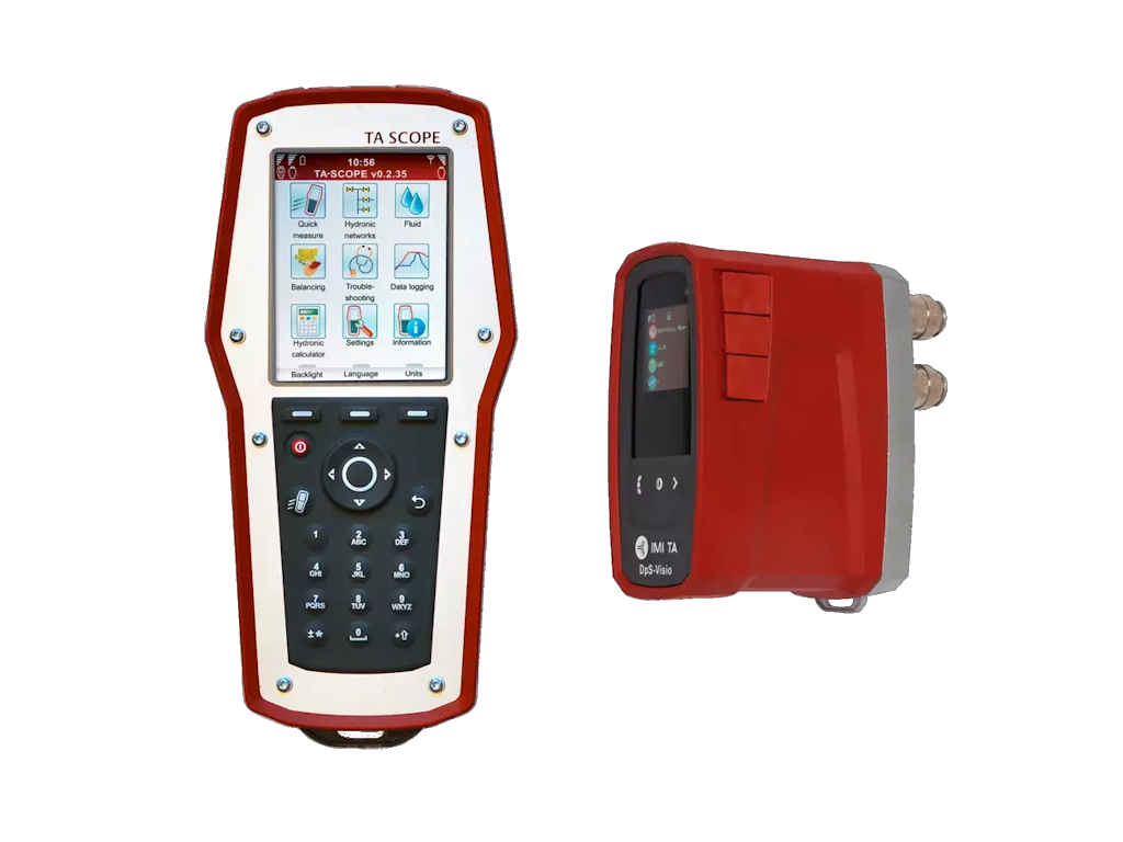 De TA Scope bestaat uit 2 onderdelen. De bedieningsunit (touchscreen) en de drukverschil sensor (draadloos). De bedieningsunit heeft TA afsluiterkarakteristieken voorgeprogrammeerd in het geheugen. De drukverschil sensor (Dp sensor) communiceert draadloos met de bedieningsunit en heeft een display voor status weergave.
