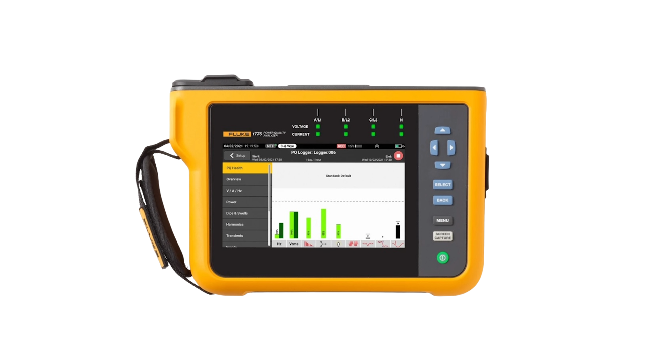 De Fluke 1775 - Power Quality Analyzer is ontwikkeld om snel en eenvoudig de kwaliteit van stroomnetten te analyseren. Dit apparaat kan automatisch metingen uitvoeren. Het heeft een eenvoudige gebruikersinterface en instellingen, de beste specificaties in zijn klasse, en een eenvoudig rapportagesysteem. Ook kan het apparaat direct stroom krijgen vanuit het meetcircuit, dus je hoeft geen stopcontact of lang verlengsnoer te gebruiken.
